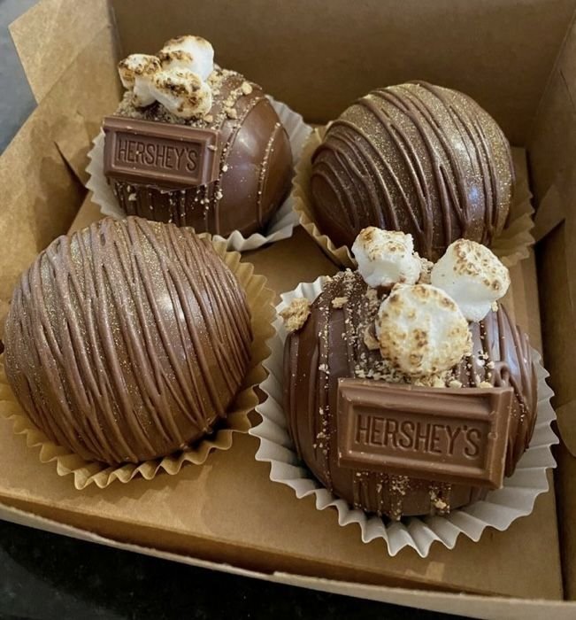 Elaboradas con chocolate de alta calidad, cuidadosamente templado para lograr una textura suave y un sabor intenso a cacao. Cada bomba ofrece un equilibrio perfecto entre dulzura y profundidad, creando una experiencia cálida y reconfortante que libera un sabor rico y cremoso, complementado con suaves malvaviscos.